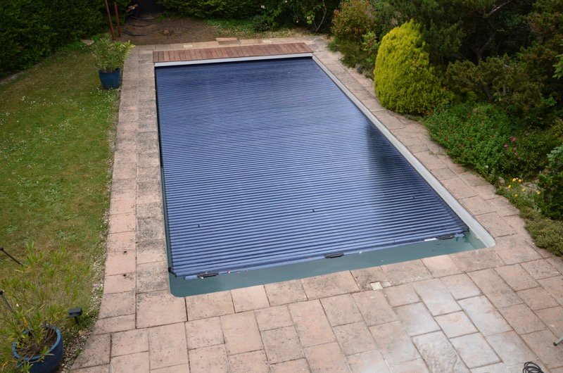 Cette magnifique piscine était équipé d’un vieux volet coulissant hors-sol. Nous l’avons entièrement démonté et nous l’avons remplacé par un très beau volet coulissant en polycarbonate.