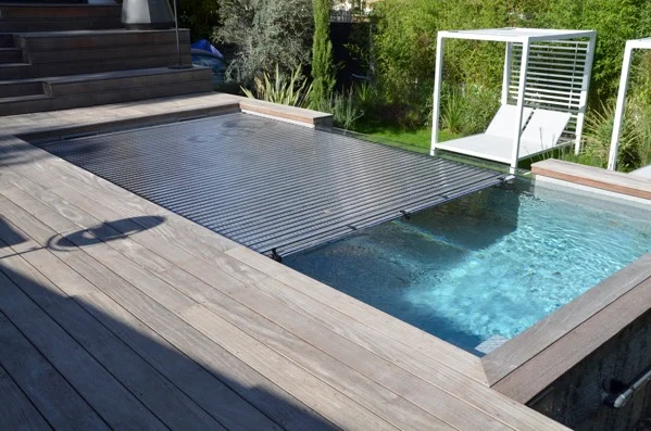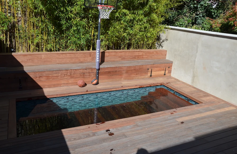 Nous avons créé une magnifique piscine à fond mobile en région parisienne. La piscine est habillée de carreaux de couleur sable qui s’accordent parfaitement avec le dallage de la terrasse, des margelles et du fond mobile. Le fond mobile, lorsqu’il est en position haute, constitue une vraie terrasse résistante dans la continuité de la terrasse existante.